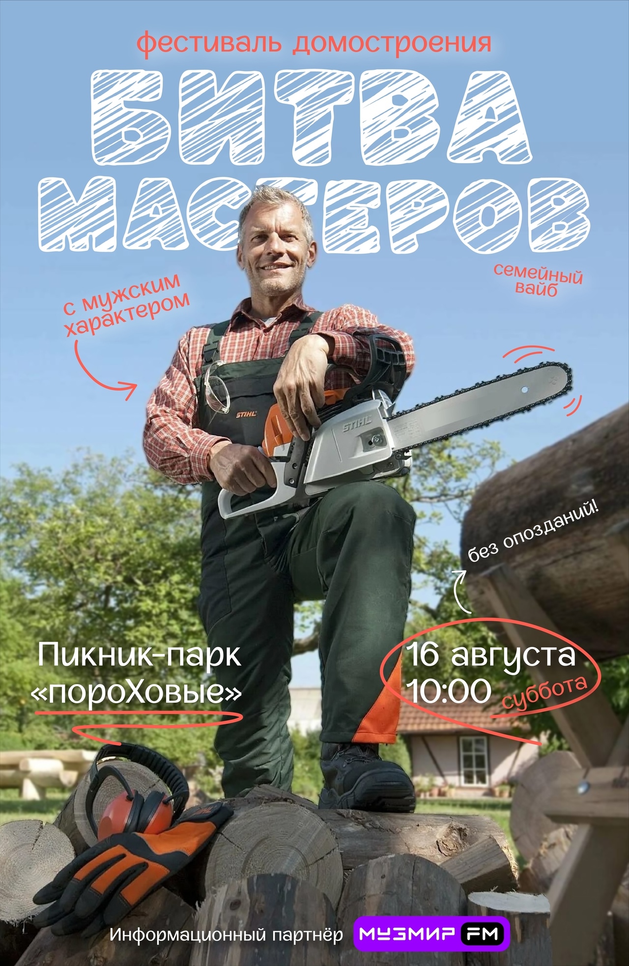 В рамках освещения «МузМир ФМ» разработал яркий визуальный стиль для всех графических материалов. Он повысил узнаваемость и создал нужный характер мероприятия. Дизайн-код связал строительную тематику и семейный тон фестиваля.